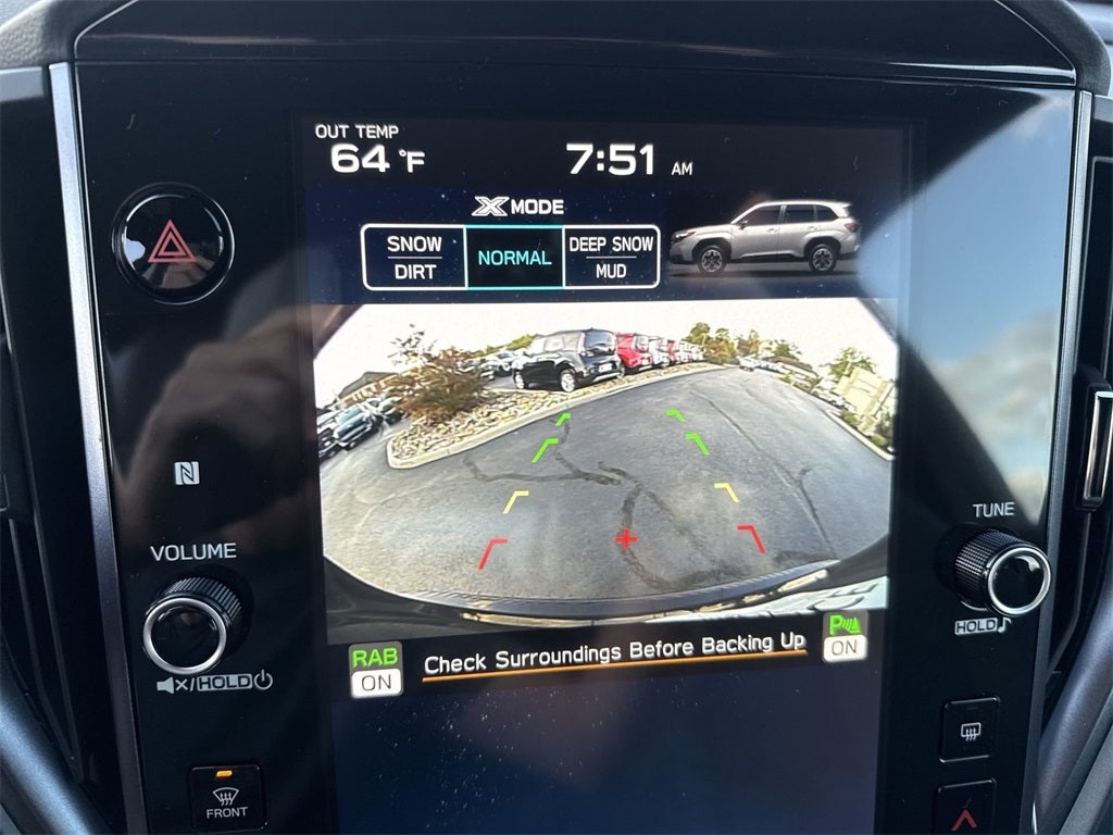 Harman/kardon Audio & Navigation & RAB (Radio: Subaru 11.6 Multimedia Navigation System and Reverse Automatic Braking (RAB) System), 4-Wheel Disc Brakes, 6 Speakers, ABS brakes, Air Conditioning, Alloy wheels, AM/FM radio: SiriusXM with 360L, Anti-whiplash front head restraints, Auto High-beam Headlights, Auto-Dimming Exterior Mirror w/Approach Light, Auto-Dimming Mirror w/Compass & HomeLink, Automatic temperature control, Brake assist, Bumpers: body-color, Driver door bin, Driver vanity mirror, Dual front impact airbags, Dual front side impact airbags, Electronic Stability Control, Emergency communication system: MySubaru Safety (3-year free trial), Exterior Parking Camera Rear, Four wheel independent suspension, Front anti-roll bar, Front Bucket Seats, Front Center Armrest, Front dual zone A/C, Front fog lights, Front reading lights, Fully automatic headlights, Heated door mirrors, Heated Front Bucket Seats, Heated front seats, Heated steering wheel, Illuminated entry, Knee airbag, Leather steering wheel, Low tire pressure warning, Occupant sensing airbag, Outside temperature display, Overhead airbag, Overhead console, Panic alarm, Passenger door bin, Passenger vanity mirror, Perforated Leather-Trimmed Upholstery, Power door mirrors, Power driver seat, Power Liftgate, Power moonroof: Panoramic, Power passenger seat, Power steering, Power windows, Radio data system, Radio: Subaru 11.6 Multimedia Plus System, Rear anti-roll bar, Rear seat center armrest, Rear window defroster, Rear window wiper, Remote keyless entry, Security system, Speed control, Speed-sensing steering, Splash Guards, Split folding rear seat, Spoiler, Steering wheel mounted audio controls, Tachometer, Telescoping steering wheel, Tilt steering wheel, Traction control, Trip computer, Turn signal indicator mirrors, Variably intermittent wipers, and Wheels: 18 x 7.0 J Dark Metallic Aluminum-Alloy.