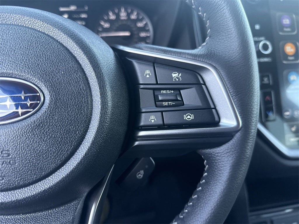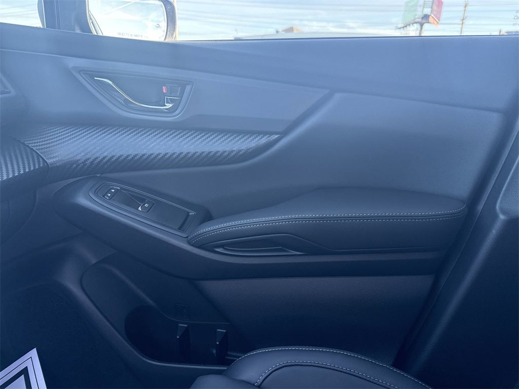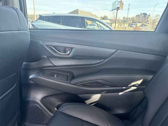 Popular Package #2 (All-Weather Floor Liners, Auto-Dimming Exterior Mirror with Approach Light, Cargo Tray, LED Cargo Area Lighting, and LED Upgrade), Standard Model, 3rd row seats: bench, 4-Wheel Disc Brakes, 6 Speakers, ABS brakes, Air Conditioning, Alloy wheels, AM/FM radio: SiriusXM with 360L, Apple CarPlay & Android Auto, Auto High-beam Headlights, Auto-dimming Rear-View mirror, Automatic temperature control, Brake assist, Bumpers: body-color, Compass, Delay-off headlights, Driver door bin, Driver vanity mirror, Dual front impact airbags, Dual front side impact airbags, Electronic Stability Control, Emergency communication system: MySubaru Companion (5-years free), Exterior Parking Camera Rear, Four wheel independent suspension, Front anti-roll bar, Front Bucket Seats, Front Center Armrest, Front dual zone A/C, Front fog lights, Front reading lights, Fully automatic headlights, Garage door transmitter: HomeLink, Heated door mirrors, Heated Front Bucket Seats, Heated front seats, Illuminated entry, Knee airbag, Leather Shift Knob, Leather steering wheel, Low tire pressure warning, Occupant sensing airbag, Outside temperature display, Overhead airbag, Overhead console, Panic alarm, Passenger door bin, Passenger vanity mirror, Power door mirrors, Power driver seat, Power Liftgate, Power steering, Power windows, Radio data system, Radio: Subaru 11.6 Multimedia Plus System, Rear air conditioning, Rear anti-roll bar, Rear reading lights, Rear window defroster, Rear window wiper, Reclining 3rd row seat, Remote keyless entry, Security system, Speed control, Speed-sensing steering, Split folding rear seat, Spoiler, StarTex-Trimmed Upholstery, Steering wheel mounted audio controls, Tachometer, Telescoping steering wheel, Tilt steering wheel, Traction control, Trip computer, Turn signal indicator mirrors, Variably intermittent wipers, and Wheels: 18 x 7.5 J Black Finish Aluminum Alloy.