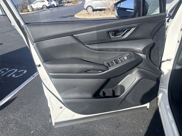 Standard Model, 3rd row seats: bench, 4-Wheel Disc Brakes, 6 Speakers, ABS brakes, Air Conditioning, Alloy wheels, AM/FM radio: SiriusXM with 360L, Apple CarPlay & Android Auto, Auto High-beam Headlights, Auto-dimming Rear-View mirror, Automatic temperature control, Black Chrome Rear Bumper Cover, Brake assist, Bumpers: body-color, Compass, Delay-off headlights, Driver door bin, Driver vanity mirror, Dual front impact airbags, Dual front side impact airbags, Electronic Stability Control, Emergency communication system: MySubaru Companion (5-years free), Exterior Parking Camera Rear, Four wheel independent suspension, Front anti-roll bar, Front Bucket Seats, Front Center Armrest, Front Door Projector Lights, Front dual zone A/C, Front fog lights, Front reading lights, Fully automatic headlights, Garage door transmitter: HomeLink, Heated door mirrors, Heated Front Bucket Seats, Heated front seats, Illuminated entry, Knee airbag, Leather Shift Knob, Leather steering wheel, Low tire pressure warning, Occupant sensing airbag, Outside temperature display, Overhead airbag, Overhead console, Panic alarm, Passenger door bin, Passenger vanity mirror, Power door mirrors, Power driver seat, Power Liftgate, Power steering, Power windows, Radio data system, Radio: Subaru 11.6 Multimedia Plus System, Rear air conditioning, Rear anti-roll bar, Rear Door Projector Lights, Rear reading lights, Rear window defroster, Rear window wiper, Reclining 3rd row seat, Remote keyless entry, Security system, Speed control, Speed-sensing steering, Split folding rear seat, Spoiler, StarTex-Trimmed Upholstery, Steering wheel mounted audio controls, Tachometer, Telescoping steering wheel, Tilt steering wheel, Traction control, Trip computer, Turn signal indicator mirrors, Variably intermittent wipers, Wheels: 18 x 7.5 J Black Finish Aluminum Alloy, and Wireless Charger.