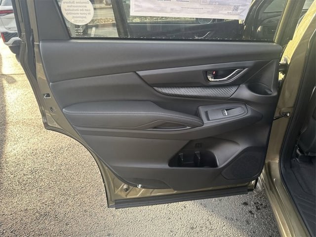 Standard Model, 3rd row seats: bench, 4-Wheel Disc Brakes, 6 Speakers, ABS brakes, Air Conditioning, All-Weather Floor Liners, Alloy wheels, AM/FM radio: SiriusXM with 360L, Apple CarPlay & Android Auto, Auto High-beam Headlights, Auto-Dimming Exterior Mirror with Approach Light, Automatic temperature control, Brake assist, Bumpers: body-color, Cargo Tray, Compass, Delay-off headlights, Driver door bin, Driver vanity mirror, Dual front impact airbags, Dual front side impact airbags, Electronic Stability Control, Emergency communication system: MySubaru Companion (5-years free), Exterior Parking Camera Rear, Four wheel independent suspension, Front anti-roll bar, Front Bucket Seats, Front Center Armrest, Front dual zone A/C, Front fog lights, Front reading lights, Fully automatic headlights, Heated door mirrors, Heated Front Bucket Seats, Heated front seats, Illuminated entry, Knee airbag, Leather Shift Knob, Leather steering wheel, LED Cargo Area Lighting, Low tire pressure warning, Occupant sensing airbag, Outside temperature display, Overhead airbag, Overhead console, Panic alarm, Passenger door bin, Passenger vanity mirror, Power door mirrors, Power driver seat, Power Liftgate, Power steering, Power windows, Radio data system, Radio: Subaru 11.6 Multimedia Plus System, Rear air conditioning, Rear anti-roll bar, Rear reading lights, Rear seat center armrest, Rear window defroster, Rear window wiper, Reclining 3rd row seat, Remote keyless entry, Security system, Speed control, Speed-sensing steering, Split folding rear seat, Spoiler, StarTex-Trimmed Upholstery, Steering wheel mounted audio controls, Tachometer, Telescoping steering wheel, Tilt steering wheel, Traction control, Trip computer, Turn signal indicator mirrors, USB Charging Cable Set, Variably intermittent wipers, and Wheels: 18 x 7.5 J Black Finish Aluminum Alloy.