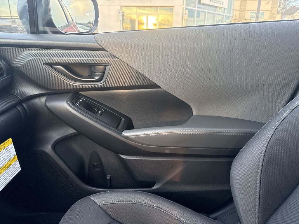 Crosstrek Mirror Package (Auto-Dimming Exterior Mirror with Approach Light and Auto-Dimming Mirror with Compass and HomeLink), Standard Model, 4-Wheel Disc Brakes, 6 Speakers, ABS brakes, Air Conditioning, Alloy wheels, AM/FM radio: SiriusXM with 360L, Anti-whiplash front head restraints, Auto High-beam Headlights, Automatic temperature control, Brake assist, Bumpers: body-color, Cloth Upholstery, Driver door bin, Driver vanity mirror, Dual front impact airbags, Dual front side impact airbags, Electronic Stability Control, Emergency communication system: MySubaru Companion (5-years free), Exterior Parking Camera Rear, Four wheel independent suspension, Front anti-roll bar, Front Bucket Seats, Front Center Armrest, Front dual zone A/C, Front fog lights, Front reading lights, Fully automatic headlights, Illuminated entry, Knee airbag, Low tire pressure warning, Occupant sensing airbag, Outside temperature display, Overhead airbag, Overhead console, Panic alarm, Passenger door bin, Passenger vanity mirror, Power door mirrors, Power steering, Power windows, Radio data system, Radio: Subaru 11.6 Multimedia Plus System, Rear anti-roll bar, Rear Bumper Cover, Rear seat center armrest, Rear side impact airbag, Rear window defroster, Rear window wiper, Remote keyless entry, Security system, Speed control, Speed-sensing steering, Split folding rear seat, Spoiler, Steering wheel mounted audio controls, Tachometer, Telescoping steering wheel, Tilt steering wheel, Traction control, Trip computer, Turn signal indicator mirrors, Variably intermittent wipers, and Wheels: 17 x 7.0 J Machine Finish Aluminum-Alloy.
