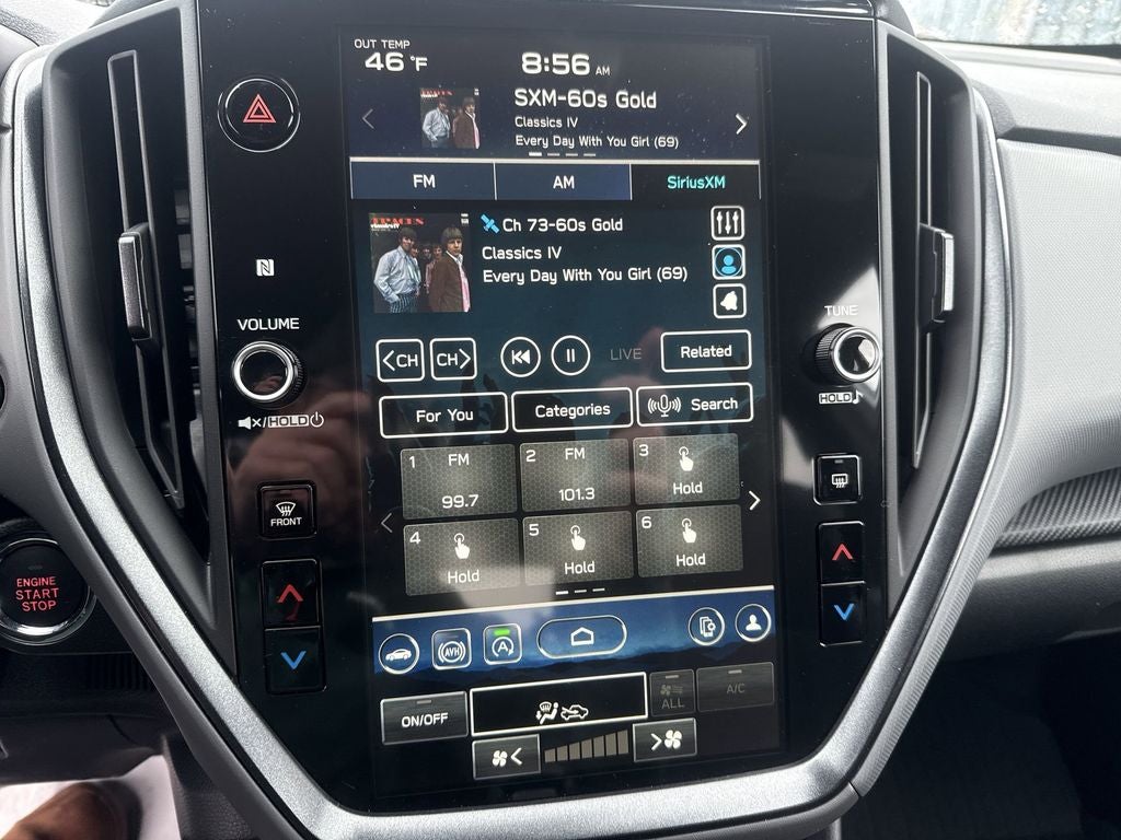 - Radio: Subaru 11.6" Multimedia Plus System -inc: AM/FM stereo, HD Radio, multi-touch gesture high resolution display screen, voice activated controls, Bluetooth® audio streaming and hands-free phone connectivity, Bluetooth® hands-free SMS text messaging connectivity, iPod control capability, smartphone integration: wired and wireless Android Auto w/full screen view and wireless Apple CarPlay w/full screen view, USB and Over The Air (OTA) audio system update, steering wheel audio system and Bluetooth® control switches, 6 speakers (2 dash panel tweeter, 2 front door and 2 rear door), illuminated 3.5mm auxiliary input jack, illuminated front USB A and C input/charge ports, connected services operation indicator, SOS emergency assistance: red SOS button and enhanced roadside assistance: blue i-button