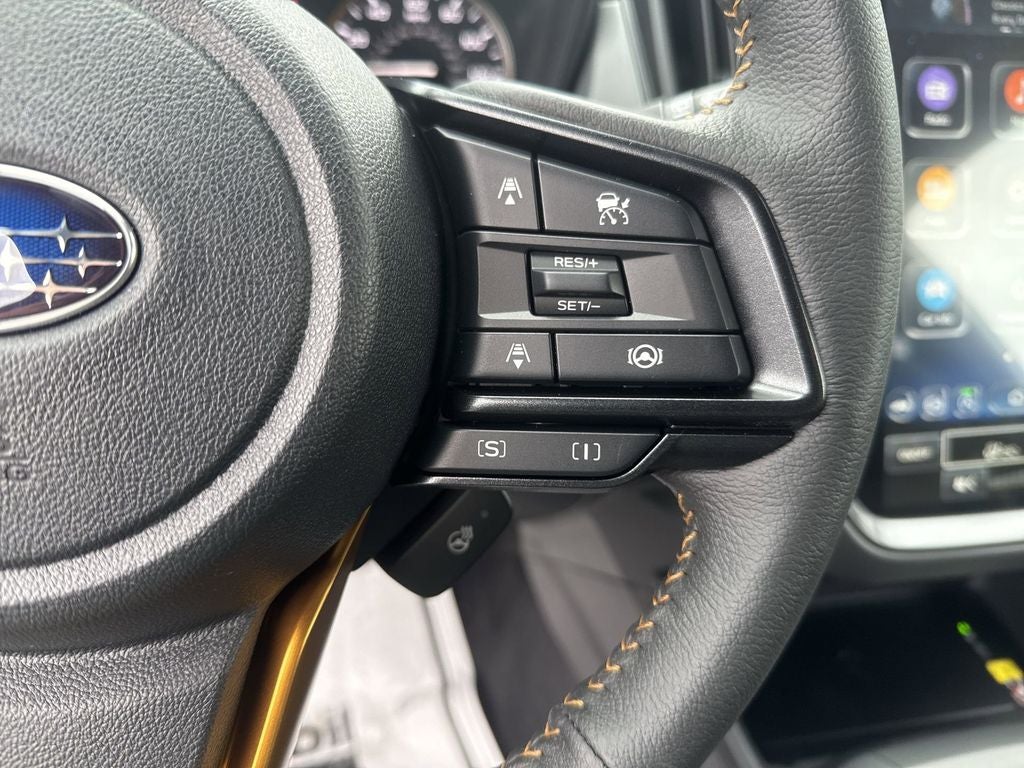 Crosstrek Mirror Package (Auto-Dimming Exterior Mirror with Approach Light and Auto-Dimming Mirror with Compass and HomeLink), Harman/Kardon Audio and Power Moonroof and Power Driver Seat (10-Way Power Driver's Seat, Harman/Kardon Speaker System, and Power Moonroof), 4-Wheel Disc Brakes, 6 Speakers, ABS brakes, Air Conditioning, Alloy wheels, AM/FM radio: SiriusXM with 360L, Anti-whiplash front head restraints, Auto High-beam Headlights, Automatic temperature control, Brake assist, Bumpers: body-color, Door Cladding, Driver door bin, Driver vanity mirror, Dual front impact airbags, Dual front side impact airbags, Electronic Stability Control, Emergency communication system: MySubaru Companion (5-years free), Exterior Parking Camera Rear, Four wheel independent suspension, Front anti-roll bar, Front Bucket Seats, Front Center Armrest, Front dual zone A/C, Front fog lights, Front reading lights, Fully automatic headlights, Heated door mirrors, Heated Front Bucket Seats, Heated front seats, Heated steering wheel, Illuminated entry, Knee airbag, Leather Shift Knob, Leather steering wheel, Low tire pressure warning, Occupant sensing airbag, Outside temperature display, Overhead airbag, Overhead console, Panic alarm, Passenger door bin, Passenger vanity mirror, Power door mirrors, Power steering, Power windows, Radio data system, Radio: Subaru 11.6 Multimedia Plus System, Rear anti-roll bar, Rear seat center armrest, Rear side impact airbag, Rear window defroster, Rear window wiper, Remote keyless entry, Security system, Speed control, Speed-sensing steering, Split folding rear seat, Spoiler, Steering wheel mounted audio controls, Tachometer, Telescoping steering wheel, Tilt steering wheel, Traction control, Trip computer, Turn signal indicator mirrors, Variably intermittent wipers, Wheels: 17 x 7.0 J Matte Black Aluminum-Alloy, and Wilderness StarTex Upholstery.