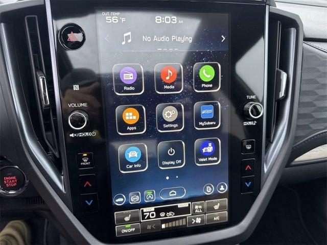 - Radio: Subaru 11.6" Multimedia Plus System -inc: valet mode, integrated center information display, AM/FM stereo HD Radio, multi-touch gesture high resolution display screen, voice activated controls, Bluetooth® audio streaming and hands-free phone connectivity w/SMS text messaging (refer to Subaru.com for cellphone compatibility), iPod control capability, smartphone integration: Android Auto and Apple CarPlay w/full screen view and wireless connection, SiriusXM satellite radio w/360L (free 4-month trial subscription included), USB and Over The Air (OTA) audio system update, steering wheel controls, 6 speakers, 3.5mm auxiliary input jack and roof mounted audio and satellite antenna
