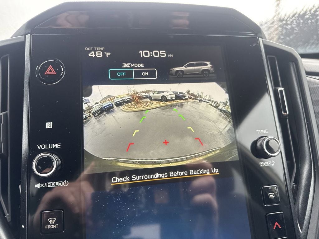 Base/Premium Plus Package (All-Weather Floor Liners, Auto-Dimming Mirror with Compass and HomeLink, Cargo Net, and Rear Bumper Cover), Standard Model, 4-Wheel Disc Brakes, 6 Speakers, ABS brakes, Air Conditioning, Alloy wheels, AM/FM radio: SiriusXM with 360L, Anti-whiplash front head restraints, Auto High-beam Headlights, Automatic temperature control, Brake assist, Bumpers: body-color, Driver door bin, Driver vanity mirror, Dual front impact airbags, Dual front side impact airbags, Electronic Stability Control, Emergency communication system: MySubaru Companion (5-years free), Exterior Parking Camera Rear, Four wheel independent suspension, Front anti-roll bar, Front Bucket Seats, Front Center Armrest, Front dual zone A/C, Front fog lights, Front reading lights, Fully automatic headlights, Heated door mirrors, Heated Front Bucket Seats, Heated front seats, Illuminated entry, Knee airbag, Leather steering wheel, Low tire pressure warning, Occupant sensing airbag, Outside temperature display, Overhead airbag, Overhead console, Panic alarm, Passenger door bin, Passenger vanity mirror, Power door mirrors, Power driver seat, Power moonroof: Panoramic, Power steering, Power windows, Premium Textured Cloth Upholstery, Radio data system, Radio: Subaru 11.6 Multimedia Plus System, Rear anti-roll bar, Rear seat center armrest, Rear window defroster, Rear window wiper, Remote keyless entry, Security system, Speed control, Speed-sensing steering, Split folding rear seat, Spoiler, Steering wheel mounted audio controls, Tachometer, Telescoping steering wheel, Tilt steering wheel, Traction control, Trip computer, Variably intermittent wipers, and Wheels: 17 x 7.0 J Dark Metallic Aluminum-Alloy.
