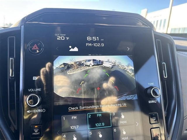 Power Rear Gate and Blind Spot Detection with Rear Cross Traffic Alert (Automatic Emergency Steering, Blind-Spot Detection (BSD)/RCTA System, Emergency Lane Keep Assist, and Power Rear Gate), 4-Wheel Disc Brakes, 6 Speakers, ABS brakes, Air Conditioning, Alloy wheels, AM/FM radio: SiriusXM with 360L, Anti-whiplash front head restraints, Auto High-beam Headlights, Auto-Dimming Exterior Mirror with Approach Light, Auto-Dimming Mirror with Compass and HomeLink, Automatic temperature control, Brake assist, Bumpers: body-color, Driver door bin, Driver vanity mirror, Dual front impact airbags, Dual front side impact airbags, Electronic Stability Control, Emergency communication system: MySubaru Companion (5-years free), Exterior Parking Camera Rear, Four wheel independent suspension, Front anti-roll bar, Front Bucket Seats, Front Center Armrest, Front dual zone A/C, Front fog lights, Front reading lights, Fully automatic headlights, Heated door mirrors, Heated Front Bucket Seats, Heated front seats, Illuminated entry, Knee airbag, Leather steering wheel, LED Upgrade, Low tire pressure warning, Occupant sensing airbag, Outside temperature display, Overhead airbag, Overhead console, Panic alarm, Passenger door bin, Passenger vanity mirror, Power door mirrors, Power driver seat, Power moonroof: Panoramic, Power steering, Power windows, Premium Textured Cloth Upholstery, Radio data system, Radio: Subaru 11.6 Multimedia Plus System, Rear anti-roll bar, Rear seat center armrest, Rear window defroster, Rear window wiper, Remote keyless entry, Security system, Speed control, Speed-sensing steering, Split folding rear seat, Spoiler, Steering wheel mounted audio controls, Sunshade - Windshield, Tachometer, Telescoping steering wheel, Tilt steering wheel, Traction control, Trip computer, Variably intermittent wipers, and Wheels: 17 x 7.0 J Dark Metallic Aluminum-Alloy.