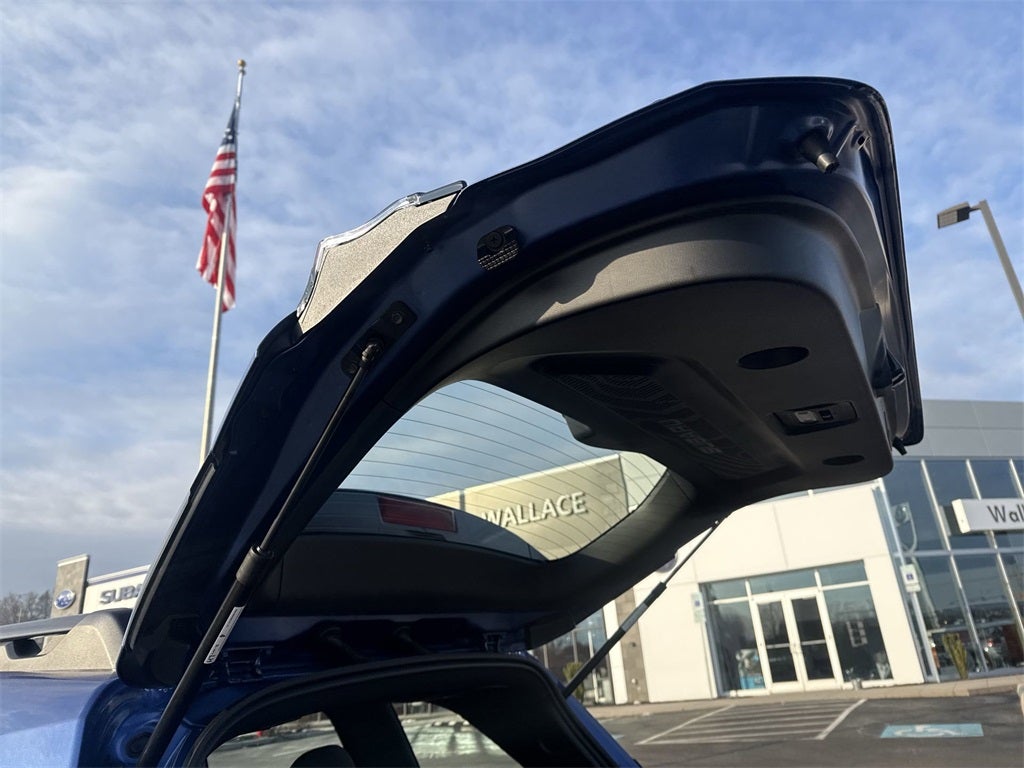 Base/Premium Package (Cargo Net, Cargo Tray, Rear Bumper Cover, and Splash Guards), Standard Model, 4 Speakers, 4-Wheel Disc Brakes, ABS brakes, Air Conditioning, Alloy wheels, AM/FM radio: SiriusXM, Anti-whiplash front head restraints, Auto High-beam Headlights, Automatic temperature control, Brake assist, Bumpers: body-color, Driver door bin, Driver vanity mirror, Dual front impact airbags, Dual front side impact airbags, Electronic Stability Control, Exterior Parking Camera Rear, Four wheel independent suspension, Front anti-roll bar, Front Bucket Seats, Front Center Armrest, Front dual zone A/C, Front reading lights, Fully automatic headlights, Hexagonal Patterned Cloth Upholstery, Illuminated entry, Knee airbag, Low tire pressure warning, Occupant sensing airbag, Outside temperature display, Overhead airbag, Overhead console, Panic alarm, Passenger door bin, Passenger vanity mirror, Power door mirrors, Power steering, Power windows, Radio data system, Radio: Subaru Dual 7.0 Multimedia System, Rear anti-roll bar, Rear window defroster, Rear window wiper, Remote keyless entry, Security system, Speed control, Speed-sensing steering, Split folding rear seat, Spoiler, Steering wheel mounted audio controls, Tachometer, Telescoping steering wheel, Tilt steering wheel, Traction control, Trip computer, Variably intermittent wipers, and Wheels: 17 x 7.0 J Dark Metallic Aluminum-Alloy.