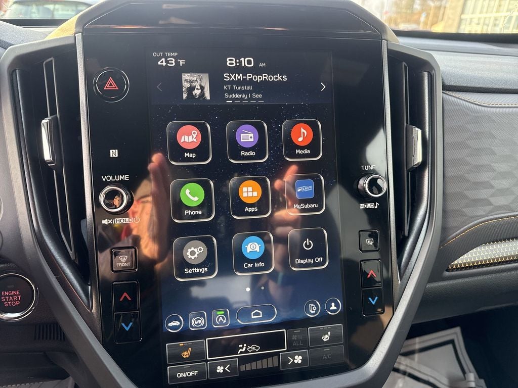 Harman/Kardon Speaker System and Power Rear Gate (Power Rear Gate and Radio: Subaru 11.6 Multimedia Navigation System), Wilderness Package (Auto-Dimming Exterior Mirror with Approach Light, Auto-Dimming Mirror with Compass and HomeLink, and Rear Bumper Cover), 4-Wheel Disc Brakes, 6 Speakers, ABS brakes, Air Conditioning, Alloy wheels, AM/FM radio: SiriusXM with 360L, Anti-whiplash front head restraints, Auto High-beam Headlights, Automatic temperature control, Brake assist, Bumpers: body-color, Driver door bin, Driver vanity mirror, Dual front impact airbags, Dual front side impact airbags, Electronic Stability Control, Emergency communication system: MySubaru Companion (5-years free), Exterior Parking Camera Rear, Four wheel independent suspension, Front anti-roll bar, Front Bucket Seats, Front Center Armrest, Front dual zone A/C, Front fog lights, Front reading lights, Fully automatic headlights, Heated door mirrors, Heated Front Bucket Seats, Heated front seats, Illuminated entry, Knee airbag, LED Upgrade, Low tire pressure warning, Occupant sensing airbag, Outside temperature display, Overhead airbag, Overhead console, Panic alarm, Passenger door bin, Passenger vanity mirror, Power door mirrors, Power driver seat, Power moonroof: Panoramic, Power steering, Power windows, Radio data system, Radio: Subaru 11.6 Multimedia Plus System, Rain sensing wipers, Rear anti-roll bar, Rear seat center armrest, Rear window defroster, Rear window wiper, Remote keyless entry, Security system, Speed control, Speed-sensing steering, Split folding rear seat, Spoiler, Steering wheel mounted audio controls, Tachometer, Telescoping steering wheel, Textured StarTex Upholstery, Tilt steering wheel, Traction control, Trip computer, Turn signal indicator mirrors, Variably intermittent wipers, and Wheels: 17 x 7.0 J Matte Black Finish Aluminum-Alloy.