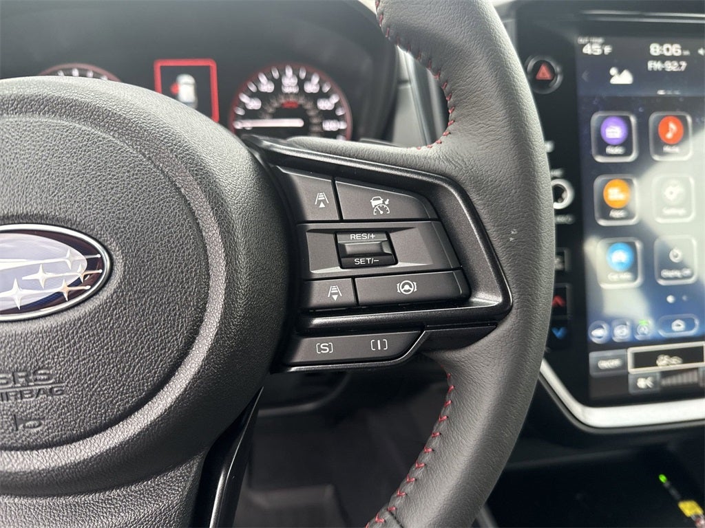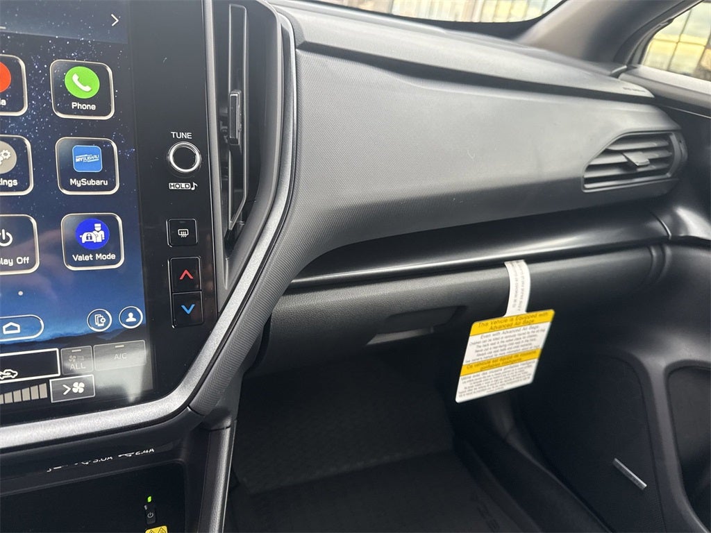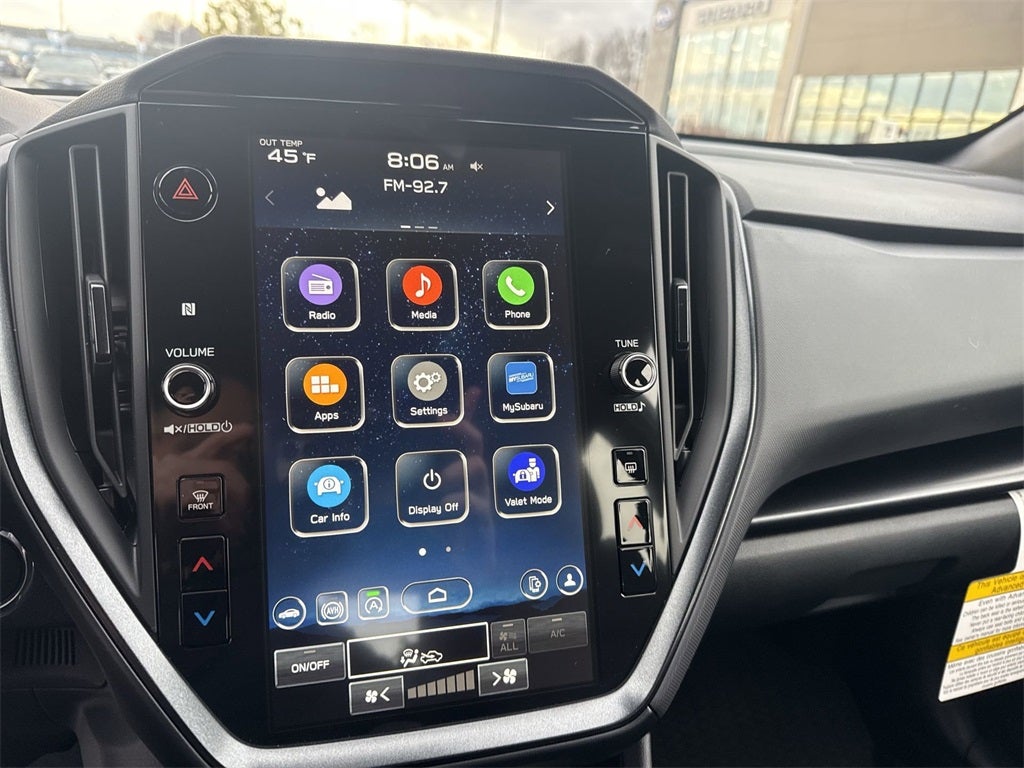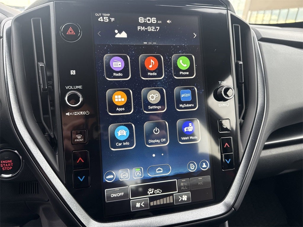 - Radio: Subaru 11.6" Multimedia Plus System -inc: valet mode, AM/FM stereo, HD Radio, multi-touch gesture high resolution display screen, voice activated controls, Bluetooth® audio streaming and hands-free phone connectivity, Bluetooth® hands-free SMS text messaging connectivity, iPod control capability, smartphone integration: wired and wireless Android Auto w/full screen view, wireless Apple CarPlay w/full screen view and wireless connection, USB and Over The Air (OTA) audio system update, audio system and Bluetooth® steering wheel control switches, 6 speakers (2 dash panel tweeter, 2 front door, 2 rear door), illuminated 3.5mm auxiliary input jack, illuminated USB A and C input charge ports, roof mounted satellite and connected services, roof mounted black antenna, connected services operation indicator, SOS emergency assistance (red button) and ehanced roadside assistance (blue i-button)