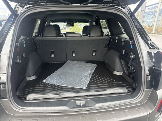 Standard Model, 12 Speakers, 4-Wheel Disc Brakes, ABS brakes, Air Conditioning, Alloy wheels, AM/FM radio: SiriusXM with 360L, Anti-whiplash front head restraints, Auto High-beam Headlights, Automatic temperature control, Blind Spot Warning, Brake assist, Bumpers: body-color, Compass, Driver door bin, Driver vanity mirror, Dual front impact airbags, Dual front side impact airbags, Electronic Stability Control, Emergency communication system: MySubaru Companion (5-years free), Exterior Parking Camera Rear, Four wheel independent suspension, Front anti-roll bar, Front Bucket Seats, Front Center Armrest w/Storage, Front dual zone A/C, Front fog lights, Front reading lights, Fully automatic headlights, harman/kardon® Speakers, Heated door mirrors, Heated Front Bucket Seats, Heated front seats, Heated rear seats, Heated steering wheel, HVAC memory, Illuminated entry, Knee airbag, Leather steering wheel, Low tire pressure warning, Memory seat, Navigation system: MySubaru Navigator (1-year trial), Occupant sensing airbag, Outside temperature display, Overhead airbag, Overhead console, Panic alarm, Passenger door bin, Passenger vanity mirror, Perforated Leather-Trimmed Upholstery, Power door mirrors, Power driver seat, Power Liftgate, Power moonroof, Power passenger seat, Power steering, Power windows, Radio: Subaru 12.1 Multimedia System with Navigation, Rain sensing wipers, Rear anti-roll bar, Rear seat center armrest, Rear window defroster, Rear window wiper, Remote keyless entry, Security system, Speed control, Speed-sensing steering, Split folding rear seat, Spoiler, Steering wheel mounted audio controls, Tachometer, Telescoping steering wheel, Tilt steering wheel, Traction control, Trip computer, Turn signal indicator mirrors, Variably intermittent wipers, and Wheels: 18 x 7J Matte Black Finish Aluminum-Alloy.
