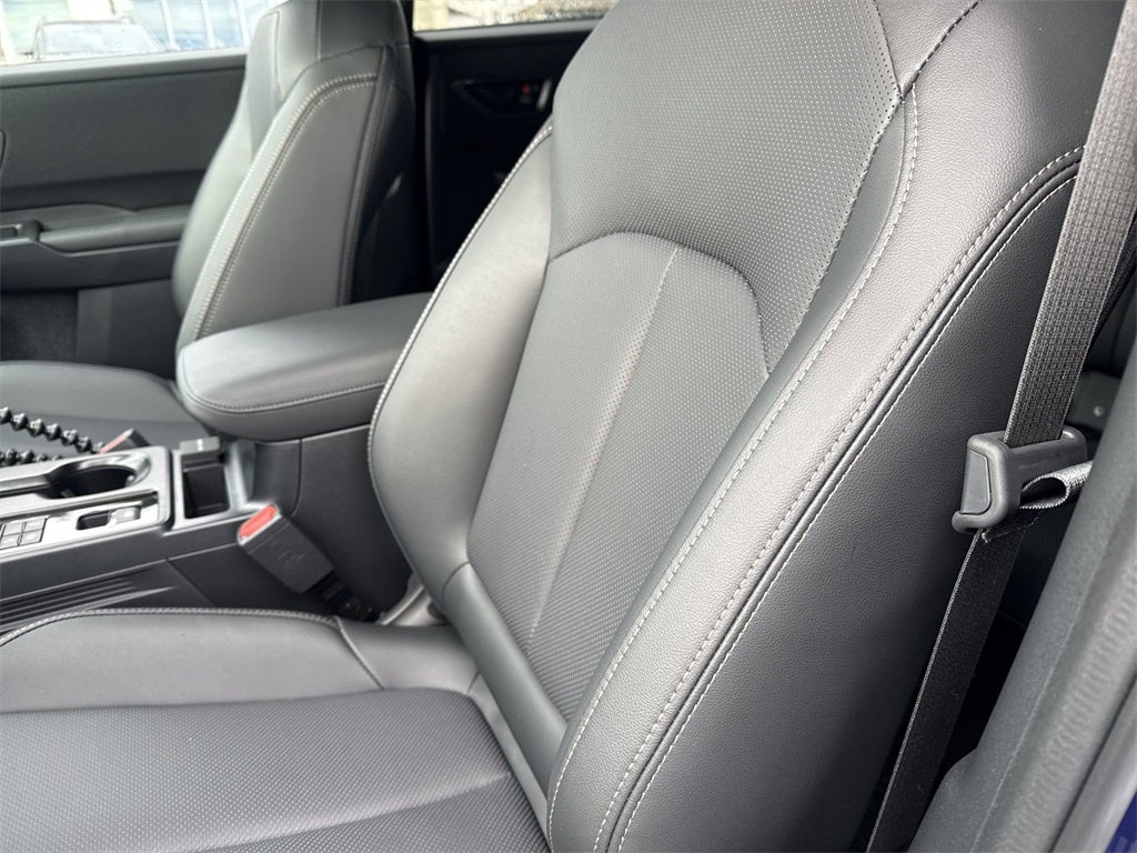 Premium/Limited Package 2 (All-Weather Floor Liners, Auto-Dimming Mirror with Compass and HomeLink, Rear Bumper Cover, and Splash Guards), Standard Model, 12 Speakers, 4-Wheel Disc Brakes, ABS brakes, Air Conditioning, Alloy wheels, AM/FM radio: SiriusXM with 360L, Anti-whiplash front head restraints, Auto High-beam Headlights, Automatic temperature control, Blind Spot Warning, Brake assist, Bumpers: body-color, Compass, Driver door bin, Driver vanity mirror, Dual front impact airbags, Dual front side impact airbags, Electronic Stability Control, Emergency communication system: MySubaru Companion (5-years free), Exterior Parking Camera Rear, Four wheel independent suspension, Front anti-roll bar, Front Bucket Seats, Front Center Armrest w/Storage, Front dual zone A/C, Front fog lights, Front reading lights, Fully automatic headlights, harman/kardon® Speakers, Heated door mirrors, Heated Front Bucket Seats, Heated front seats, Heated rear seats, Heated steering wheel, HVAC memory, Illuminated entry, Knee airbag, Leather steering wheel, Low tire pressure warning, Memory seat, Navigation system: MySubaru Navigator (1-year trial), Occupant sensing airbag, Outside temperature display, Overhead airbag, Overhead console, Panic alarm, Passenger door bin, Passenger vanity mirror, Perforated Leather-Trimmed Upholstery, Power door mirrors, Power driver seat, Power Liftgate, Power moonroof, Power passenger seat, Power steering, Power windows, Radio: Subaru 12.1 Multimedia System with Navigation, Rain sensing wipers, Rear anti-roll bar, Rear seat center armrest, Rear window defroster, Rear window wiper, Remote keyless entry, Security system, Speed control, Speed-sensing steering, Split folding rear seat, Spoiler, Steering wheel mounted audio controls, Tachometer, Telescoping steering wheel, Tilt steering wheel, Traction control, Trip computer, Turn signal indicator mirrors, Variably intermittent wipers, and Wheels: 18 x 7J Matte Black Finish Aluminum-Alloy.