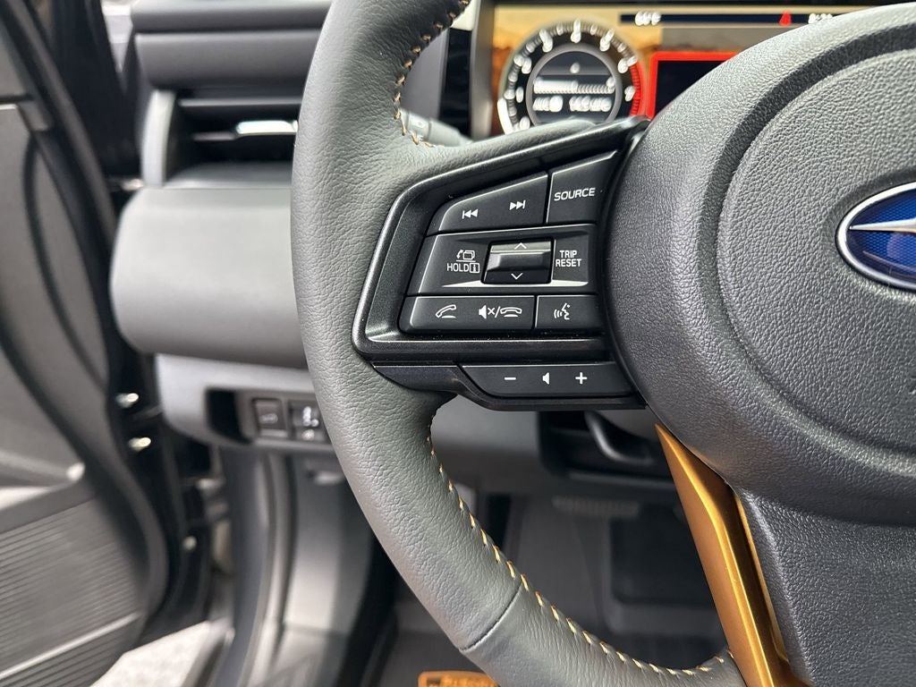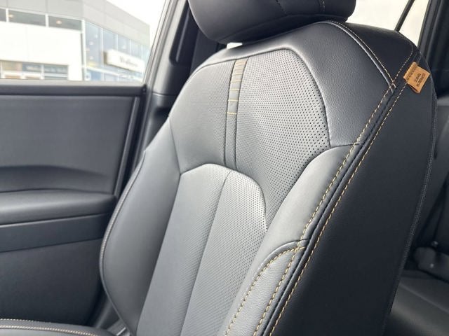 Moonroof and Navigation and Surround View Monitor and Ventilated Seats (Heated and Ventilated Front Bucket Seats, Nappa Leather Upholstery, Power Moonroof, Power-Folding Heated Exterior Mirrors, Radio: Subaru 12.1 Multimedia System with Navigation, and Surround View Monitor), 12 Speakers, 4-Wheel Disc Brakes, ABS brakes, Air Conditioning, Alloy wheels, AM/FM radio: SiriusXM with 360L, Anti-whiplash front head restraints, Auto High-beam Headlights, Automatic temperature control, Blind Spot Warning, Brake assist, Bumpers: body-color, Driver door bin, Driver vanity mirror, Dual front impact airbags, Dual front side impact airbags, Electronic Stability Control, Emergency communication system: MySubaru Companion (5-years free), Exterior Parking Camera Rear, Four wheel independent suspension, Front anti-roll bar, Front Bucket Seats, Front Center Armrest w/Storage, Front dual zone A/C, Front fog lights, Front reading lights, Fully automatic headlights, harman/kardon® Speakers, Heated door mirrors, Heated Front Bucket Seats, Heated front seats, Heated rear seats, Heated steering wheel, HVAC memory, Illuminated entry, Knee airbag, Leather Shift Knob, Leather steering wheel, Low tire pressure warning, Occupant sensing airbag, Outside temperature display, Overhead airbag, Overhead console, Panic alarm, Passenger door bin, Passenger vanity mirror, Power door mirrors, Power driver seat, Power Liftgate, Power steering, Power windows, Radio: Subaru 12.1 Multimedia System, Rain sensing wipers, Rear anti-roll bar, Rear seat center armrest, Rear window defroster, Rear window wiper, Remote keyless entry, Security system, Speed control, Speed-sensing steering, Split folding rear seat, Spoiler, StarTex-Trimmed Upholstery, Steering wheel mounted audio controls, Tachometer, Telescoping steering wheel, Tilt steering wheel, Traction control, Trip computer, Turn signal indicator mirrors, Variably intermittent wipers, and Wheels: 17 x 7J Matte Black Finish Aluminum-Alloy.