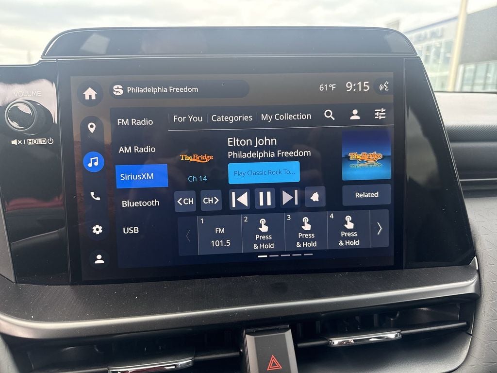 - Radio: Subaru 12.1" Multimedia System -inc: AM/FM stereo, HD Radio, valet mode, multi-touch gesture high resolution display screen, voice activated controls, Bluetooth® audio streaming and hands-free phone connectivity w/SMS text messaging (refer to subaru.com for cell phone compatibility), smartphone integration for Android Auto and Apple CarPlay w/full screen view and wireless connection, USB (CCU only) and Over The Air (OTA) audio system update, audio system, hands-free phone and voice command talk steering wheel control switches, 576 watt harman/kardon surround sound system w/12 speakers and 1 subwoofer, illuminated USB-A and USB-C input/charge ports and SiriusXM w/360L (4 months free trial included/subscription required after)